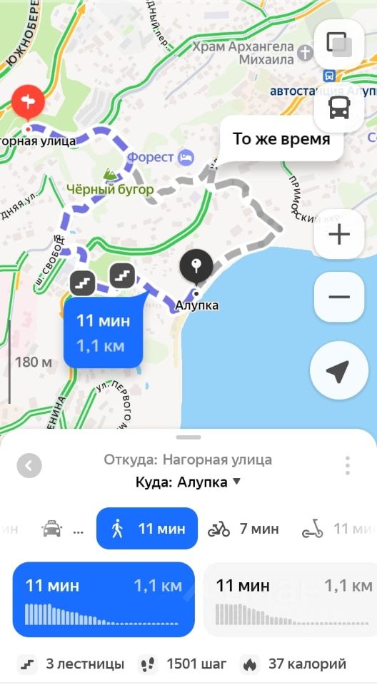 Расстояние до моря по прямой 500 метров, пешком 1,1 км или 11 минут, на автомобиле 2 км или 7 минут, до выезда на Южнобережное шоссе 1,2 км, до Ялты 14 км.
