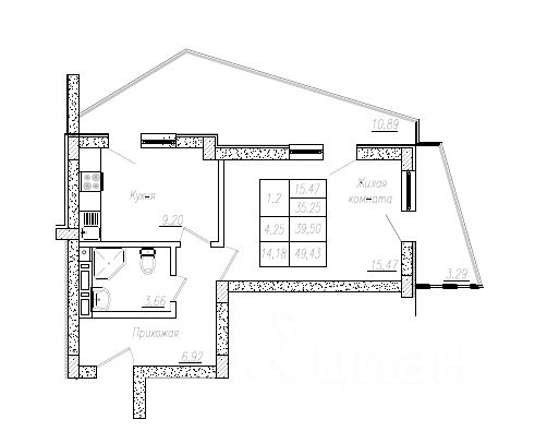 Жилая площадь15,4 м2