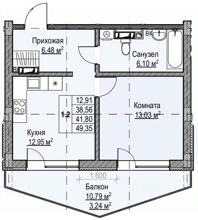 Продаётся 1-комнатная квартира в строящемся доме (Дом 3-а), срок сдачи: III-кв. 2027, общей площадью 41.8 кв.м., на 8 этаже. Жилой дом от застройщика ''Власта Инвест Крым'' в городе ялта на улице И. Левитана.