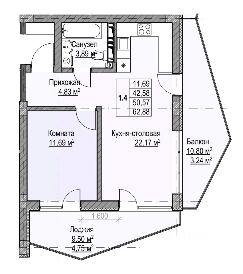 Продаётся 1-комнатная квартира в строящемся доме (Дом 3А), срок сдачи: II-кв. 2027, общей площадью 50.57 кв.м., на 2 этаже. Жилой дом от застройщика ''Власта Инвест Крым'' в городе ялта на улице И. Левитана.
