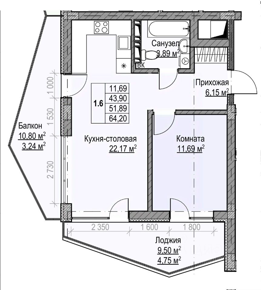 Продаётся 1-комнатная квартира в строящемся доме (Дом 3А), срок сдачи: II-кв. 2027, общей площадью 51.89 кв.м., на 6 этаже. Жилой дом от застройщика ''Власта Инвест Крым'' в городе ялта на улице И. Левитана.