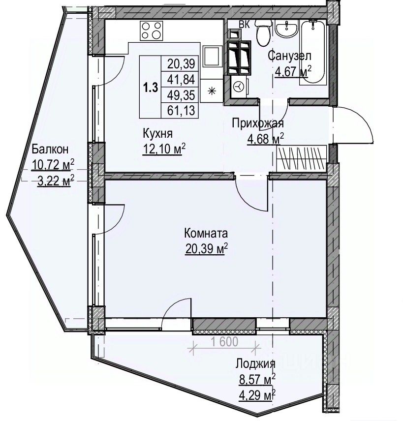 Продаётся 1-комнатная квартира в строящемся доме (Дом 3-а), срок сдачи: III-кв. 2027, общей площадью 49.35 кв.м., на 9 этаже. Жилой дом от застройщика ''Власта Инвест Крым'' в городе ялта на улице И. Левитана.