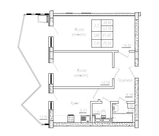Общая площадь62,4 м2