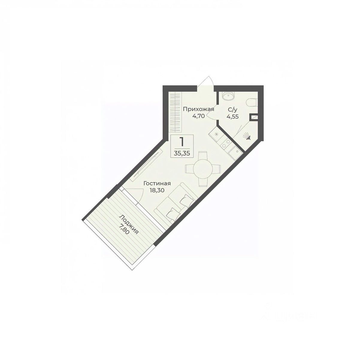 Общая площадь35,35 м2