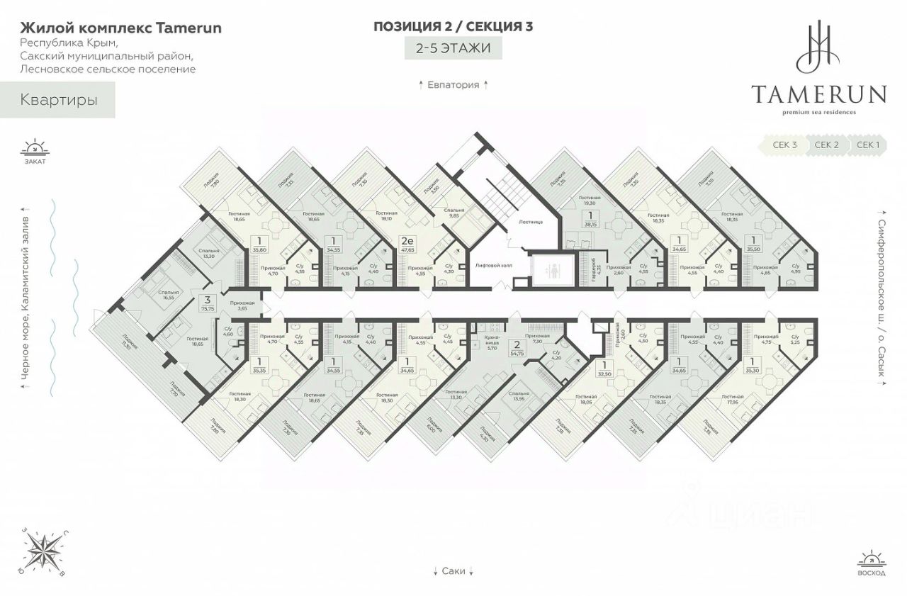Резиденция ''Tamerun'' представляет собой современный комплекс из четырёх корпусов высотой 9 и 12 этажей, гармонично вписанных в живописный ландшафт. Интерьеры выполнены в изысканном элегантном стиле с применением премиальных материалов — натурального мрамора, ценных пород дерева и высококачественной кожи. Просторные помещения наполнены естественным светом благодаря большим панорамным окнам, открывающим завораживающие виды на Черное море. Атмосфера резиденции пропитана уютом и гармонией, создавая идеальные условия для комфортной жизни и отдыха.