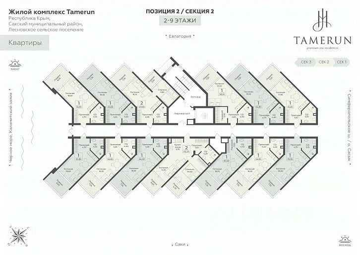 Резиденция ''Tamerun'' представляет собой современный комплекс из четырёх корпусов высотой 9 и 12 этажей, гармонично вписанных в живописный ландшафт. Интерьеры выполнены в изысканном элегантном стиле с применением премиальных материалов — натурального мрамора, ценных пород дерева и высококачественной кожи. Просторные помещения наполнены естественным светом благодаря большим панорамным окнам, открывающим завораживающие виды на Черное море. Атмосфера резиденции пропитана уютом и гармонией, создавая идеальные условия для комфортной жизни и отдыха.