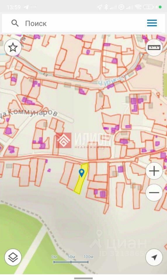 Площадь земельного участка составляет 10 соток, к участку уже заведены газ, свет и централизованная вода. В данный момент земельный надел требует очистки, так как на нем есть маленький ветхий дом. Участок в несколько ярусов.