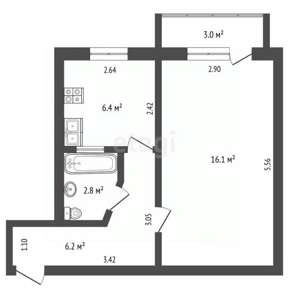 Общая площадь квартиры 31,5 м2 без учета балкона, кухня 6,4 м2, огромная жилая комната 16,1м2 с выходом на балкон . Санузел совмещен в кафеле . В квартире на кухне имеется газовая колонка. В комнате двуспальная кровать с ортопедическим матрасом и двумя прикроватными тумбочками. Есть гардеробная для хранения вещей. Установлен кондиционер.