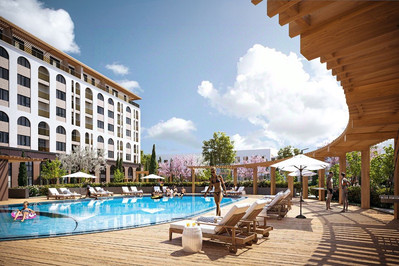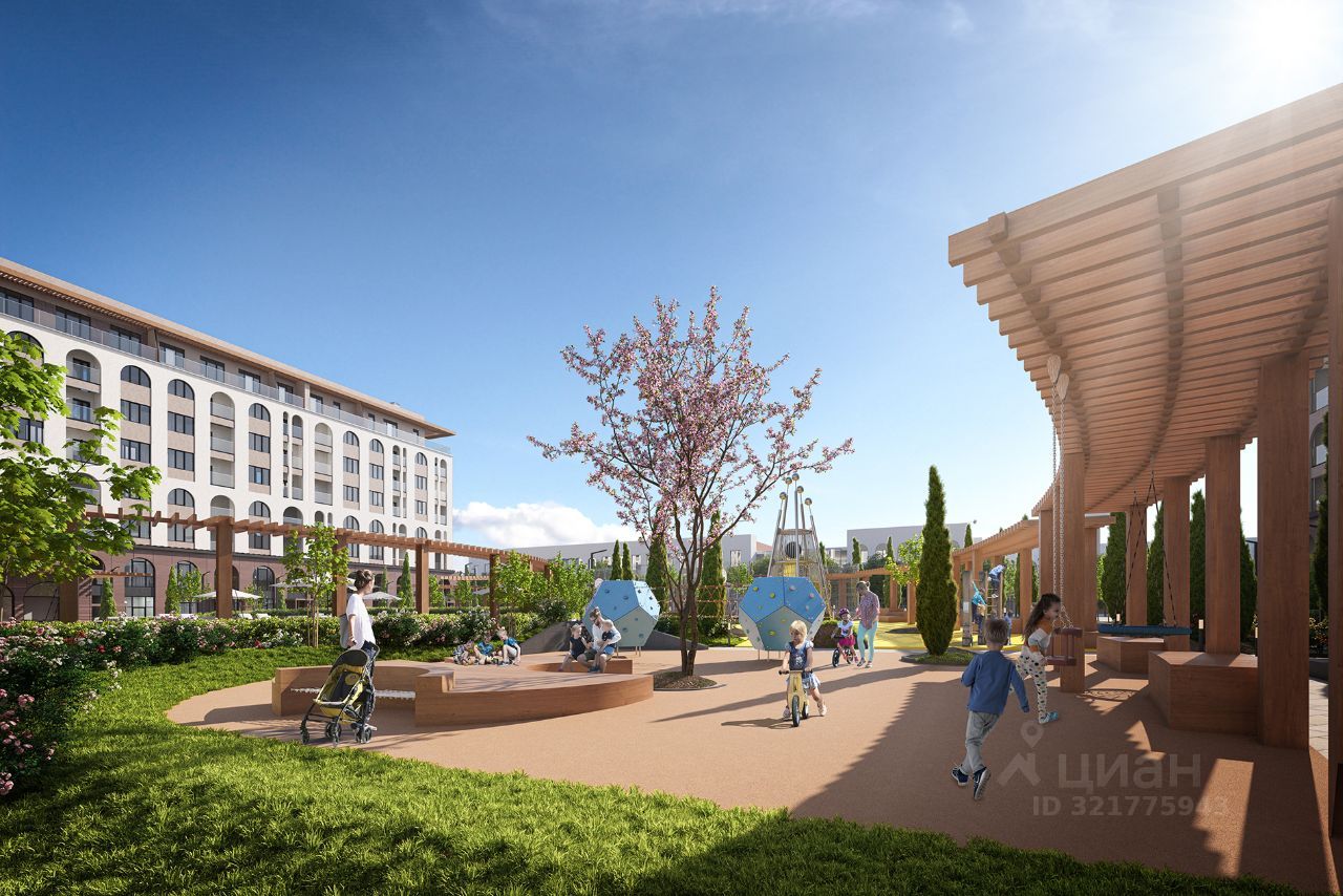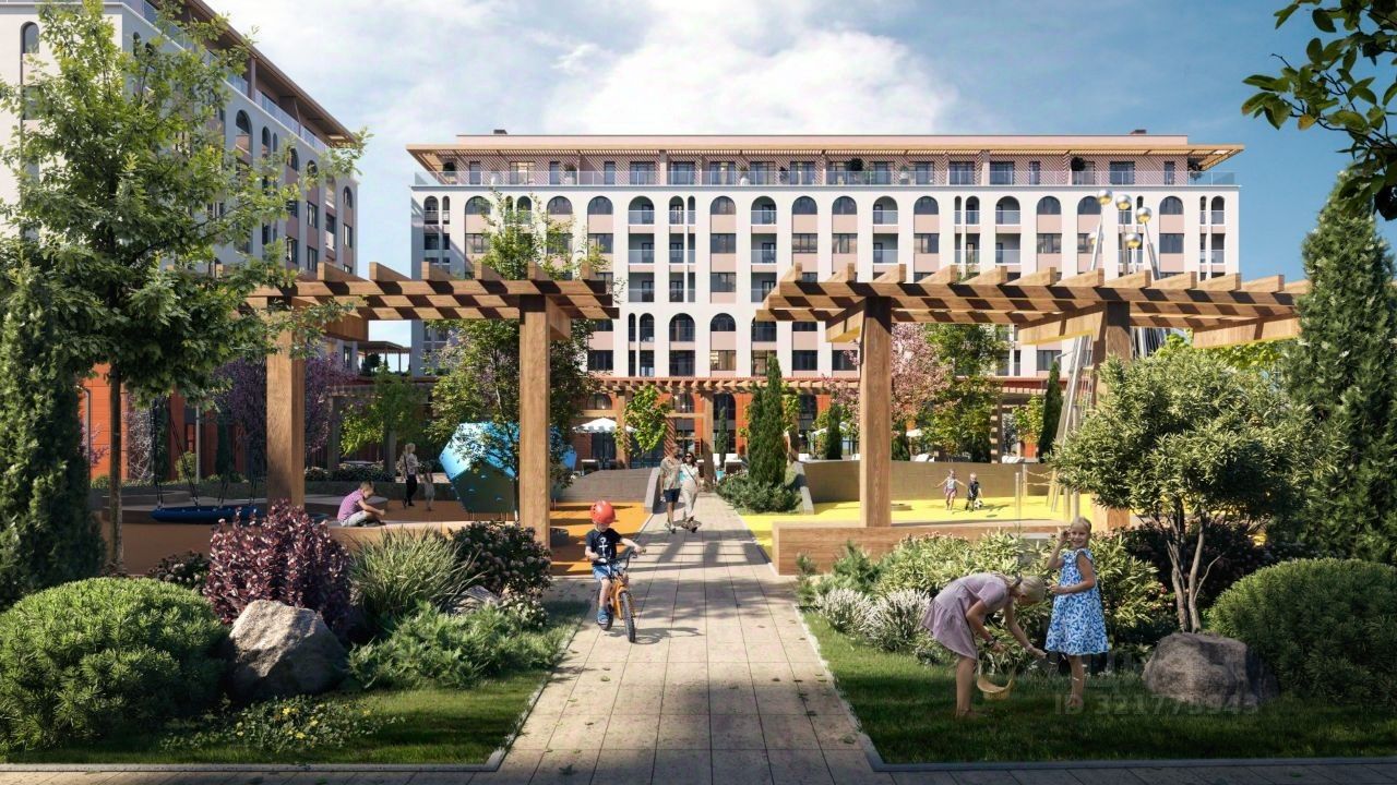ИНФРАСТРУКТУРА - открытый бассейн с зонами отдыха и шезлонгами - собственная традиционно оборудованная баня - многофункциональная спортивная площадка и уличный workout - велосипедная дорожка по всему периметру жилого комплекса - детские площадки с безопасным покрытием - прогулочные аллеи с местами для отдыха