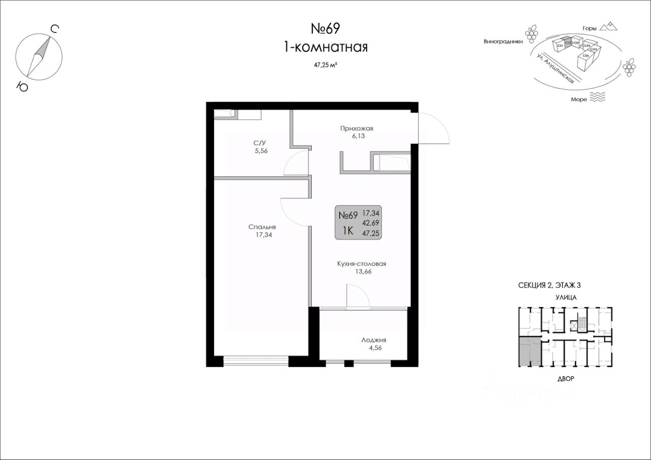 Продаётся 1-комнатная квартира в строящемся доме (Строение 1), срок сдачи: I-кв. 2027, общей площадью 47.25 кв.м., на 3 этаже.
