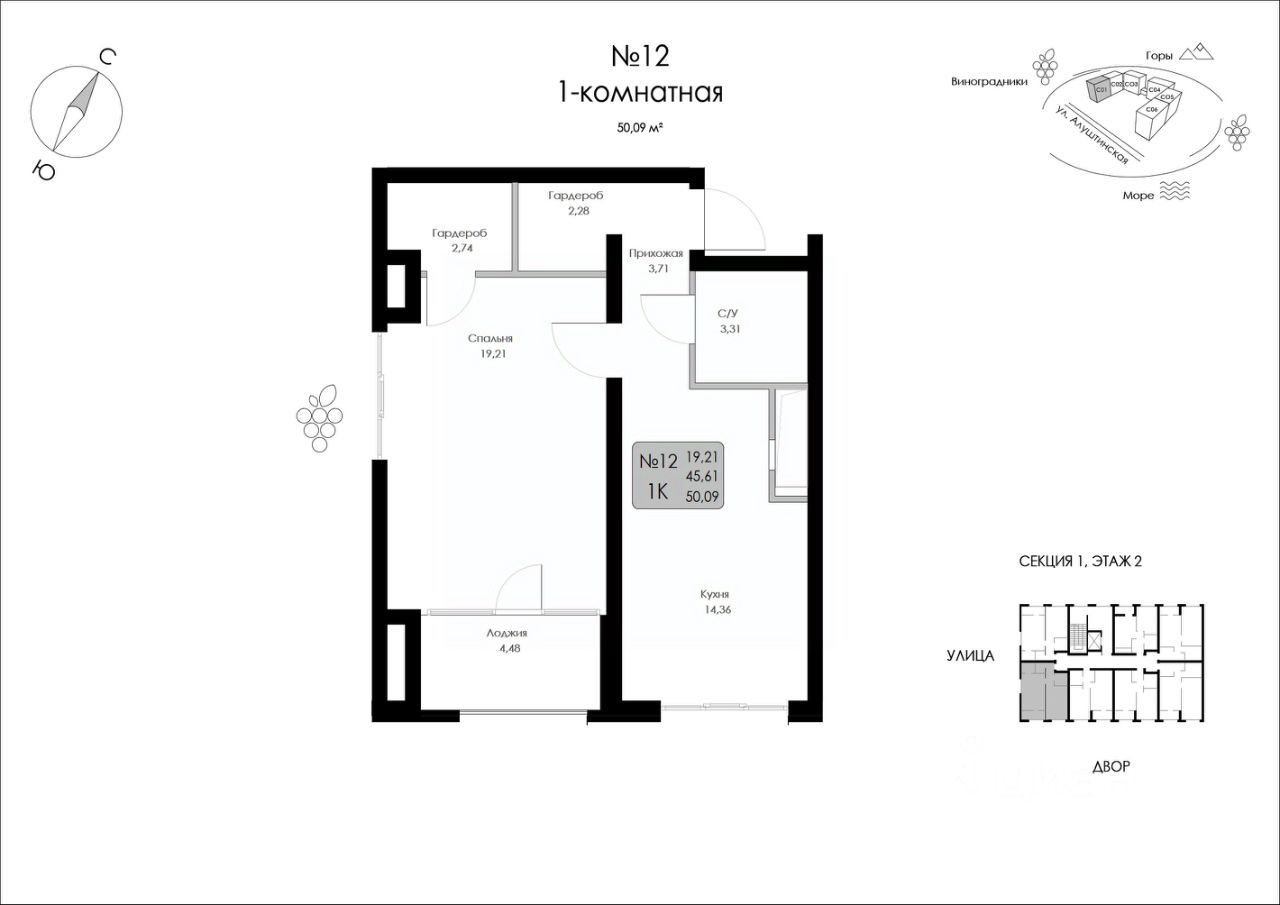 Продаётся 1-комнатная квартира в строящемся доме (Строение 1), срок сдачи: I-кв. 2027, общей площадью 50.09 кв.м., на 2 этаже.