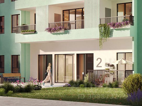 2-комнатная квартира на 1 этаже с высотой потолков 3,6м и собственной террасой.