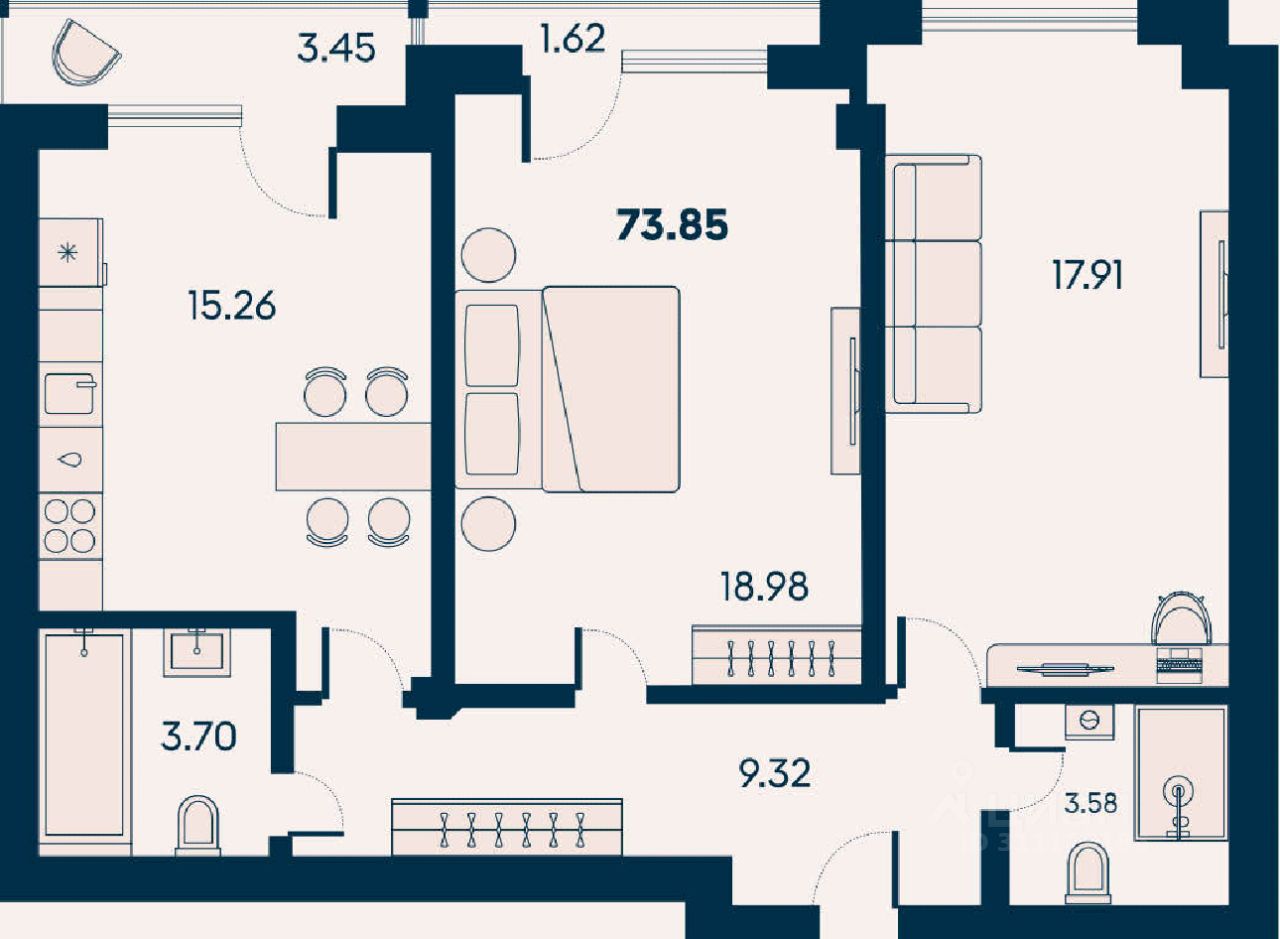 Общая площадь73,85 м2
