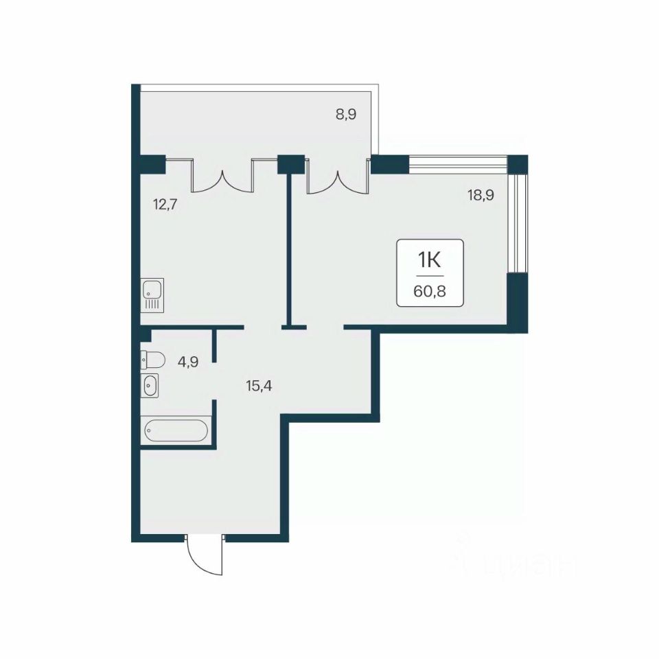 Общая площадь60,8 м2