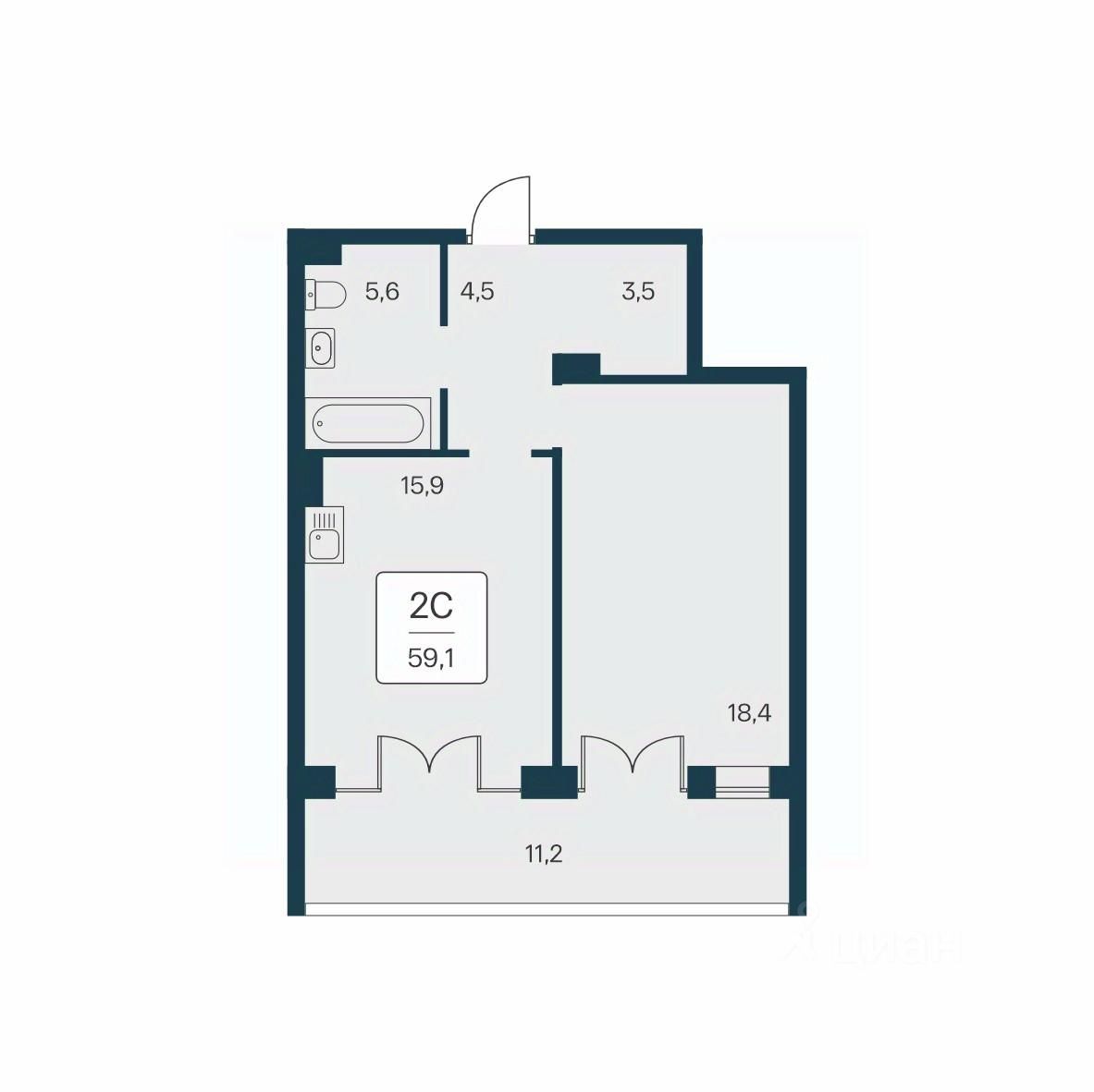 Общая площадь59,1 м2