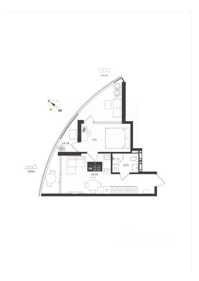 Продаются апартаменты общей площадью 45,66 м2 в премиальном гостиничном комплексе апартаментов ''Паруса мечты'' в историческом районе г. Алушты.