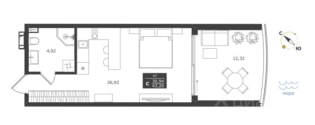 Продаются апартаменты общей площадью 43,26 м2 в премиальном гостиничном комплексе апартаментов ''Паруса мечты'' в историческом районе г. Алушты.