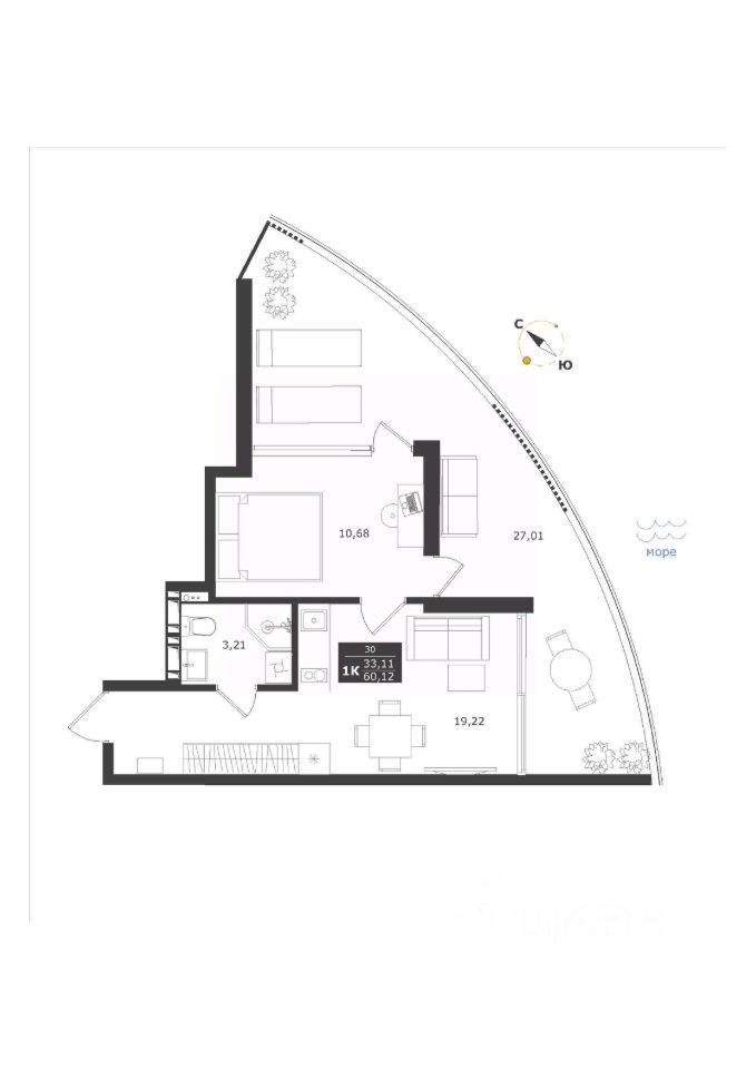 Продаются апартаменты общей площадью 60,12 м2 в премиальном гостиничном комплексе апартаментов ''Паруса мечты'' в историческом районе г. Алушты.