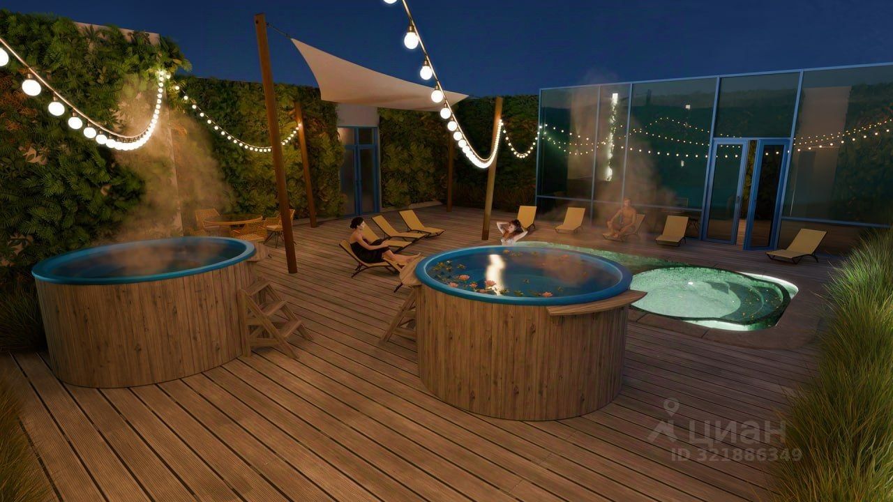 Приватный бассейн во дворе позволяет жителям наслаждаться плаванием и активным отдыхом в любое время года, независимо от погодных условий.На крыше предусмотрен кинотеатр под открытым небом для совместных просмотров и культурных мероприятий.