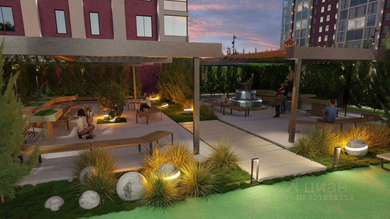 Приватные дворы-парки подняты на 4 метра от уровня земли, позволяя резидентам комплекса оставаться наедине с собой, скрытыми от посторонних глаз. Безопасность гарантируется закрытой территорией с круглосуточной охраной, видеонаблюдением и системой контроля доступа по Face ID.