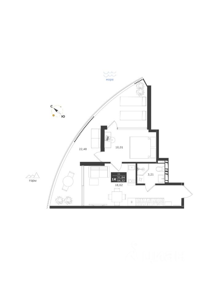 Продаются апартаменты общей площадью 54,32 м2 в премиальном гостиничном комплексе апартаментов ''Паруса мечты'' в историческом районе г. Алушты.