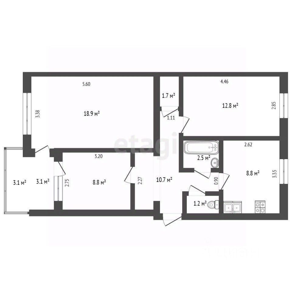 Общая площадь квартиры 65.4м2, большая кухня 8,8м2. Три изолированные комнаты 12,8м2,18,9м2, 8,8м2 с выходом на лоджию. Санузел раздельный, центральное отопление. Квартира очень теплая , светлая, уютная . В квартире сделан косметический ремонт, что позволит новым владельцам воплотить в жизнь свои дизайнерские идеи. Отличное сочетание цена-качество делает этот вариант жилья привлекательным для многих покупателей.