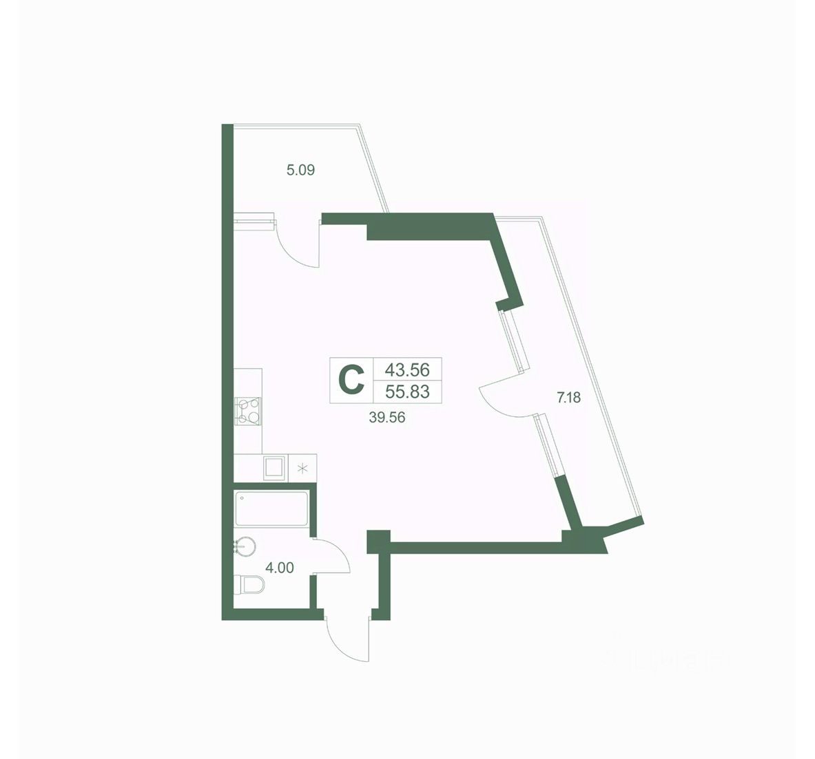 Общая площадь55,83 м2