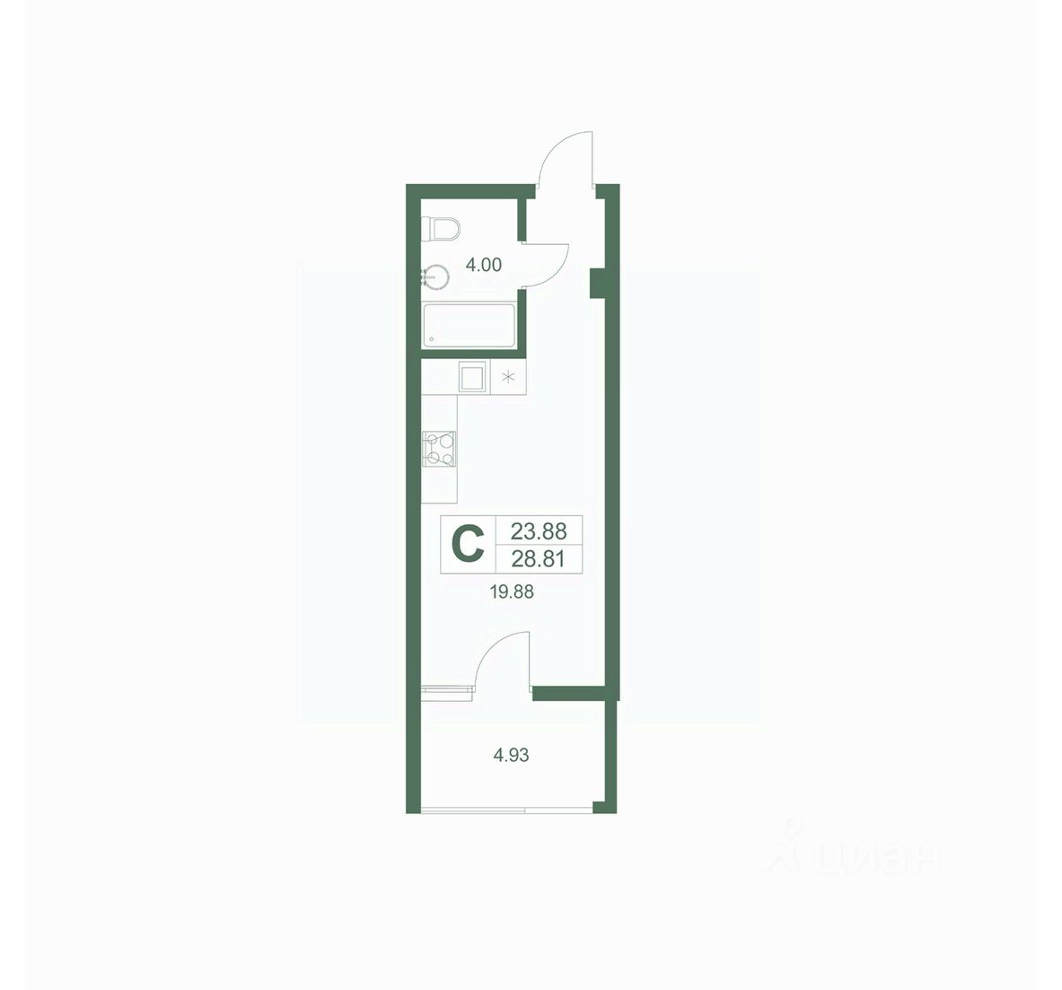 Общая площадь28,81 м2