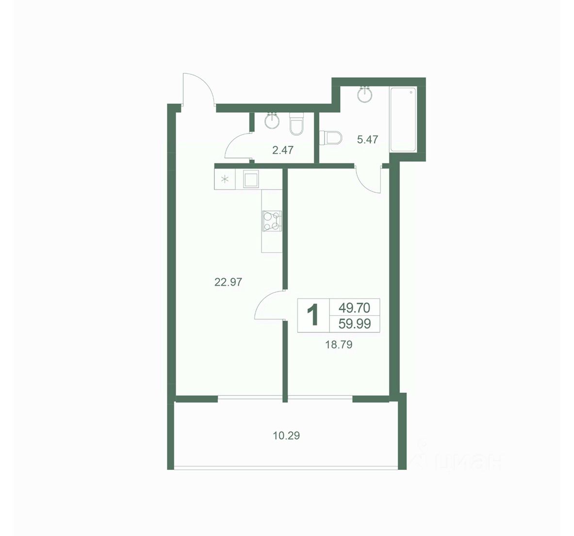 Общая площадь59,99 м2