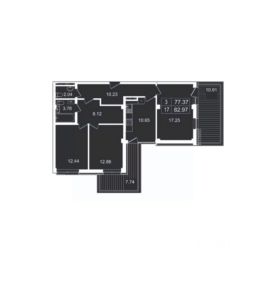 Общая площадь82,97 м2