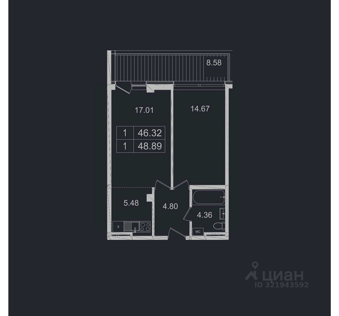 Общая площадь48,89 м2