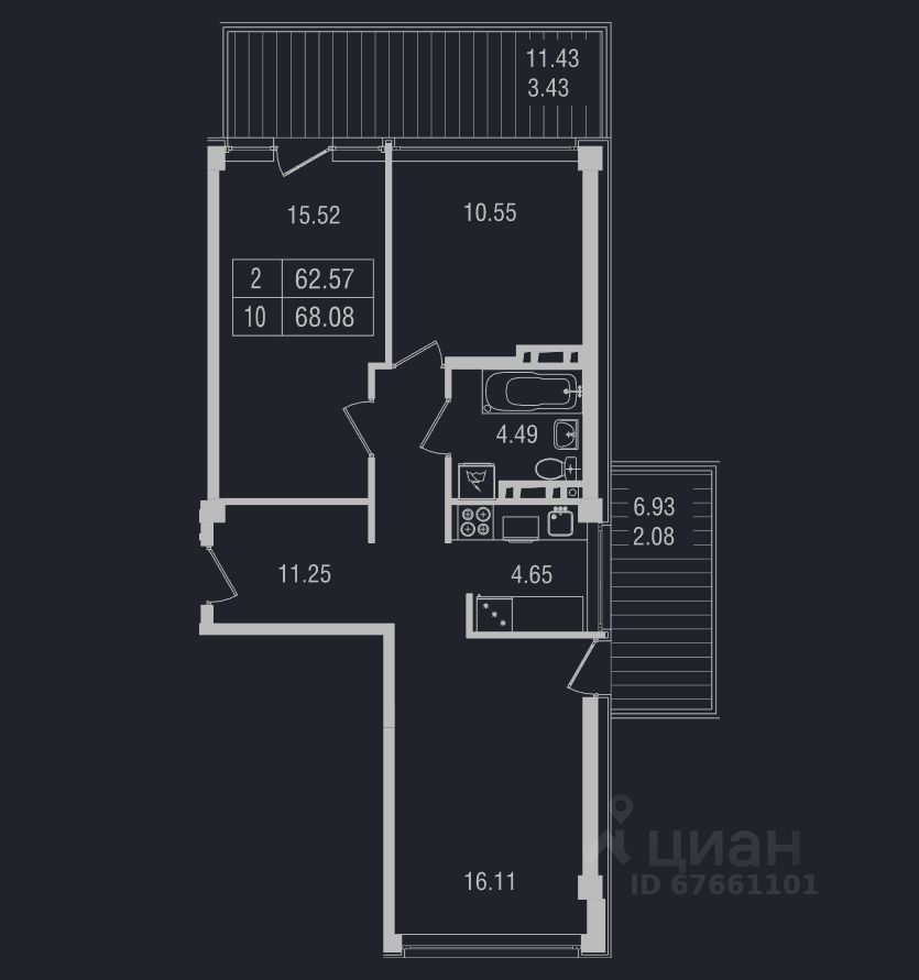 Общая площадь68,08 м2