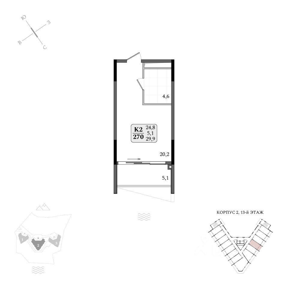 Планировочные решения: Количество апартаментов: 413 Площадь апартаментов: от 29,7 до 212,4 м2 В комплексе представлена широкая линейка планировочных решений от студий до двухуровневых пентхаусов на последних этажах. Комплекс обладает 100% видовыми характеристиками, а панорамные раздвижные окна позволяют любоваться пейзажами, не вставая с кровати.