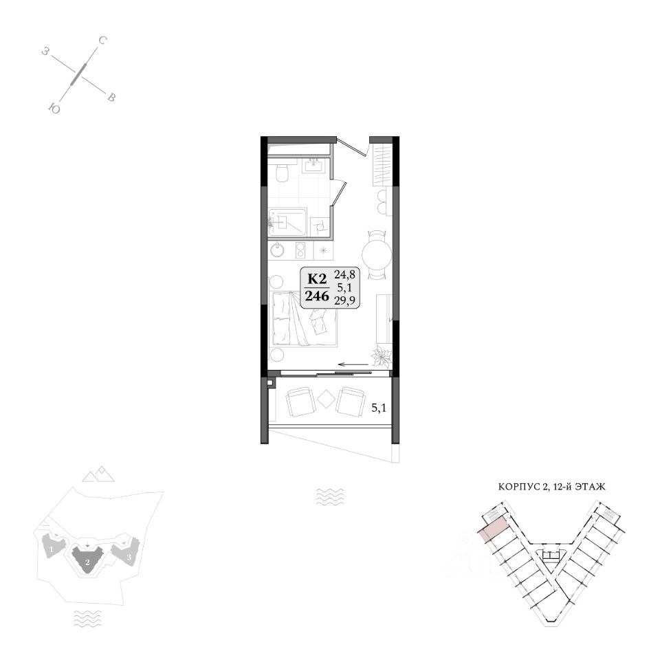 Продаются апартаменты 2/246 площадью 29,9 м2