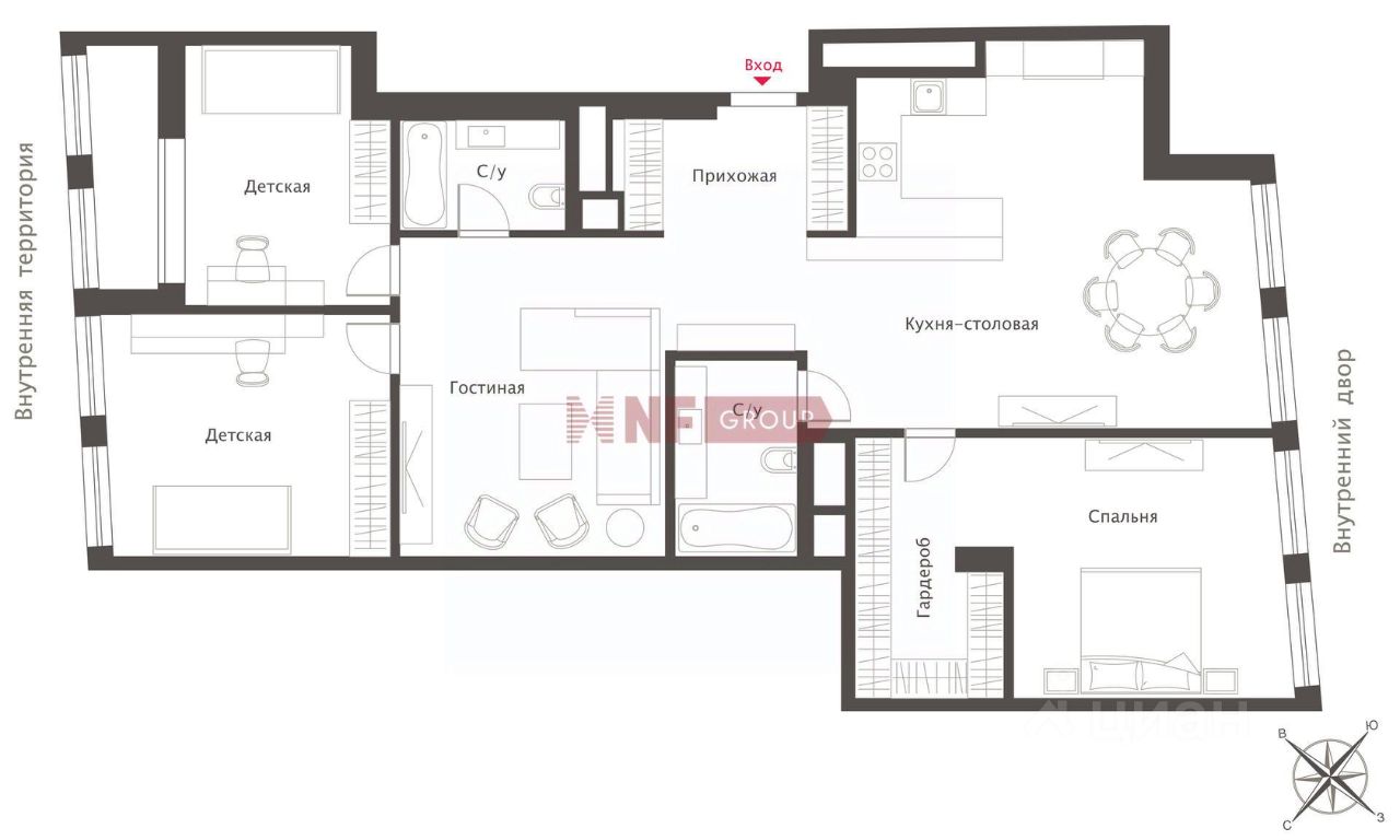 Грамотная планировка включает в себя: - кухня с обеденной зоной, - гостиная, расположенная отдельно, - светлая спальня с собственной гардеробной, - две детские спальни, одну из которых можно обустроить как кабинет, - две ванные комнаты, - застекленная лоджия. Высота потолка 3,6 м. Окна выходят на 2 стороны: на тихий пешеходный переулок и в благоустроенный двор.