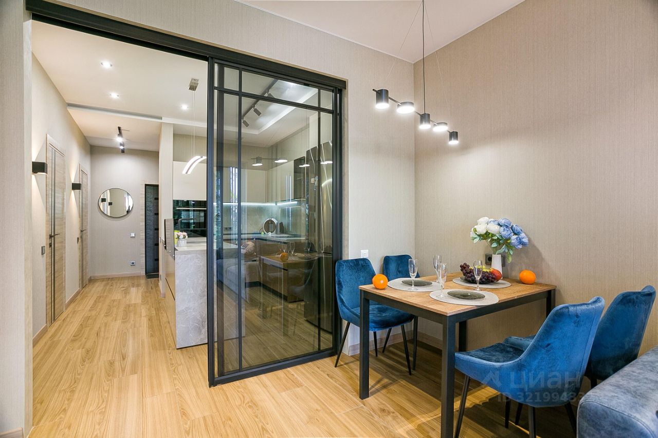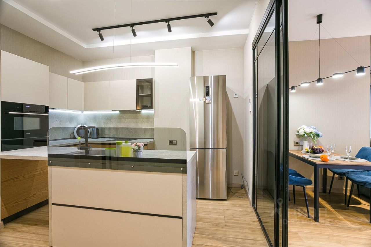 Квартира состоит из: кухни со стеклянной перегородной отделяющей от зала.