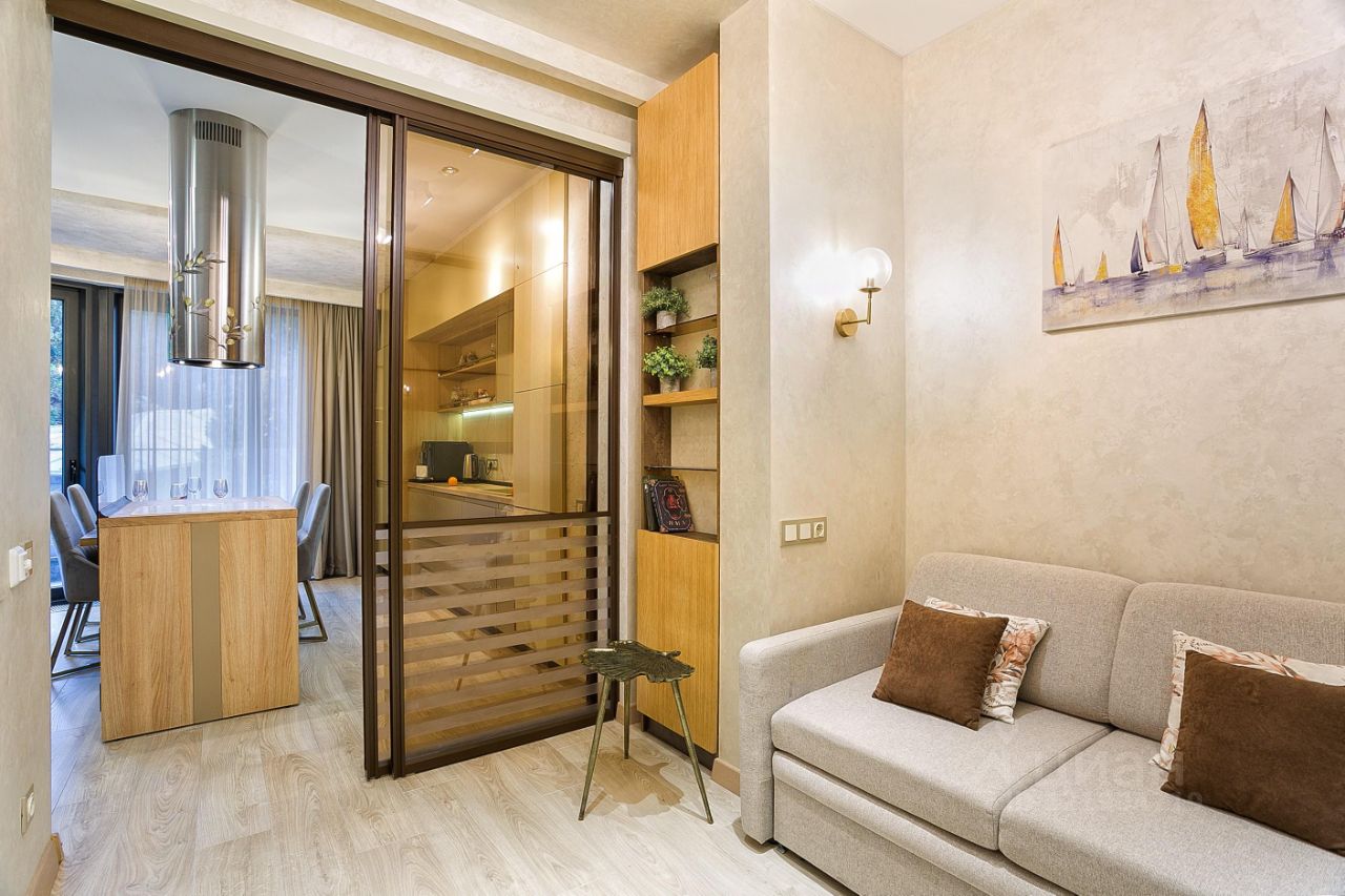 Компания Whiteroom приветствует вас! Апартамент на 6 этаже: Студия + спальная отдельная и вторая спальня смежная с кухней студией (77 м²) до 4 человек (двуспальная кровать и 2х раскладных дивана) с 2 террасами видом на лес! Пешком до: