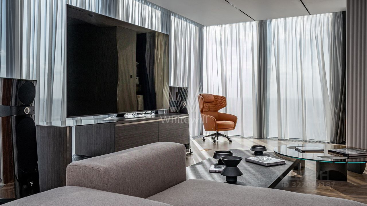 Функциональная планировка включает кухню-гостиную с обеденной зоной, мастер-спальню с собственной ванной комнатой и гардеробной, вторую спальню со своим санузлом и гардеробной, гостевой санузел, гардеробную и холл. Благодаря панорамному остеклению пространство наполнено естественным светом, открываются виды на город и башни ''Москва-Сити''. В стоимость входит три машиноместа в подземном паркинге.