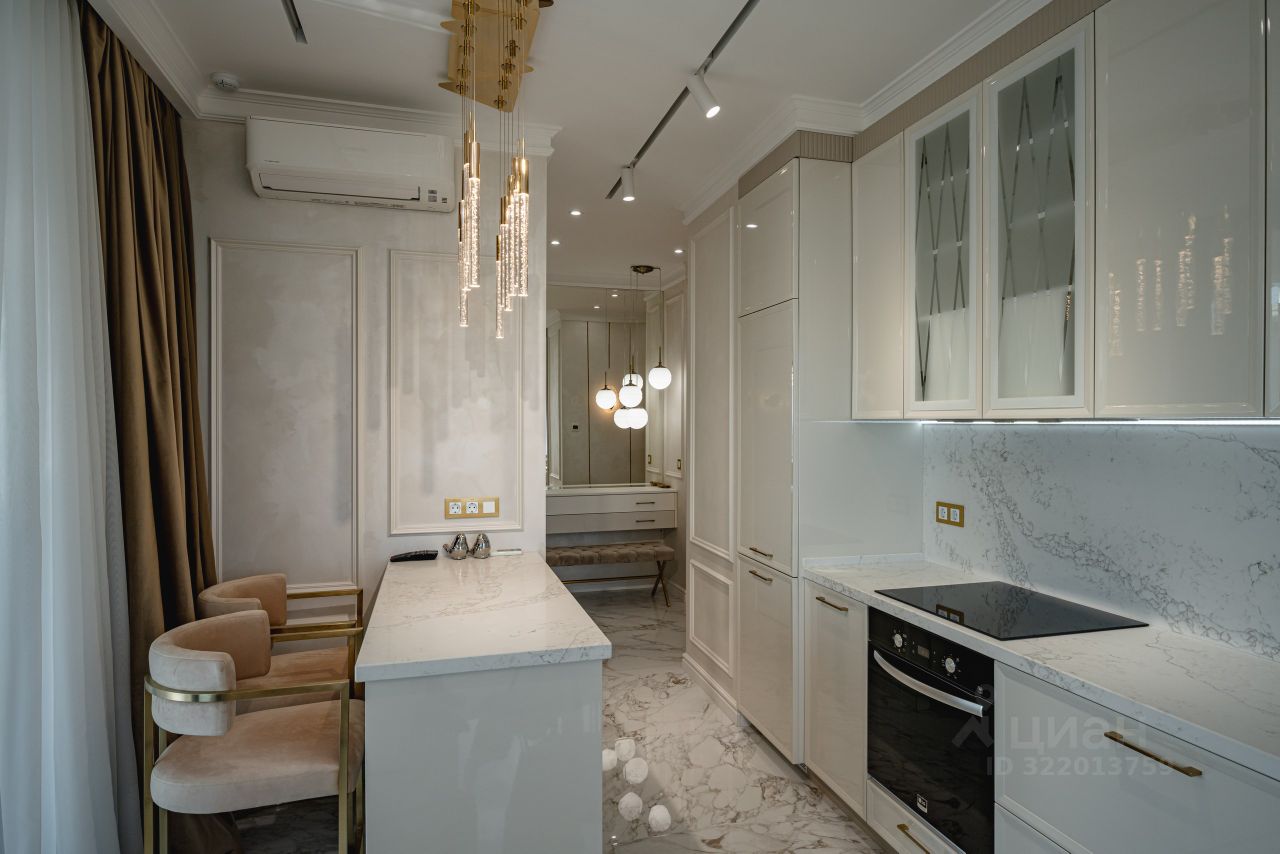 Дизайнерский ремонт: Стиль ар-деко с использованием премиальных материалов и техники Neff говорит о высоком качестве отделки.