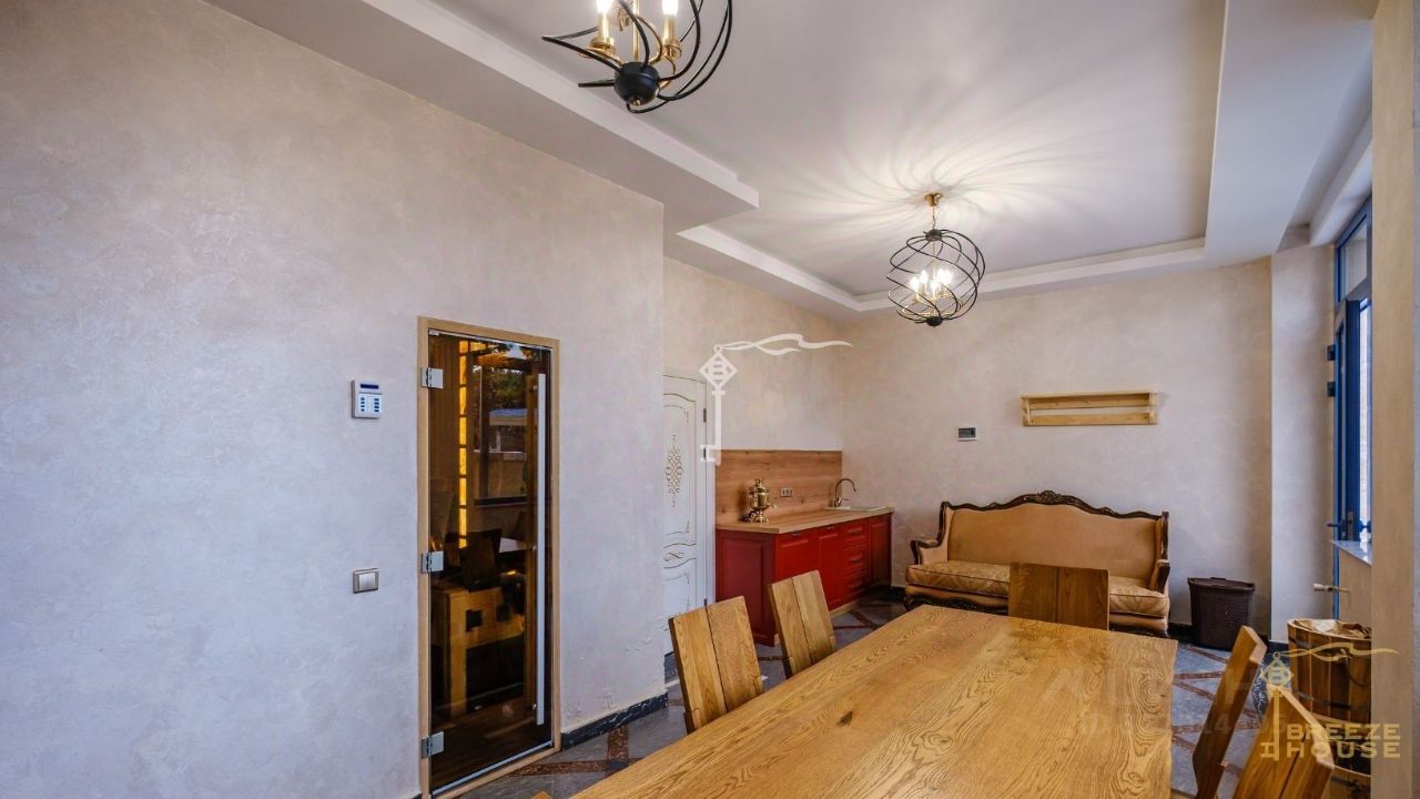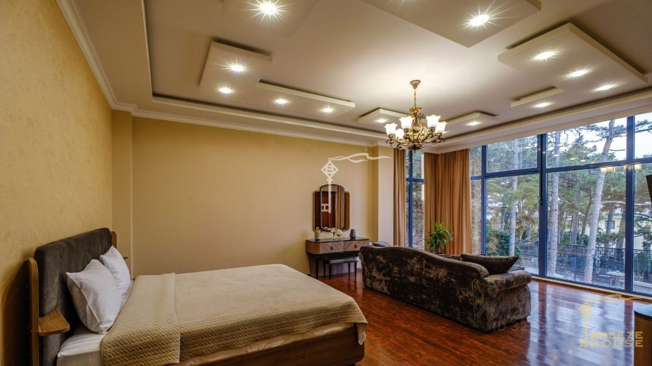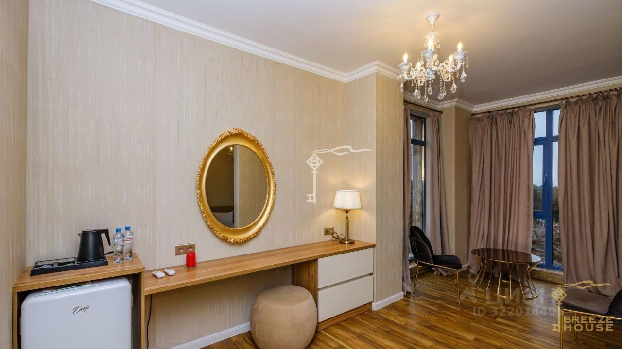 В каждом номере выполнен неповторимый дизайнерский ремонт из премиальных европейских материалов. Все номера оборудованы элитной мебелью.