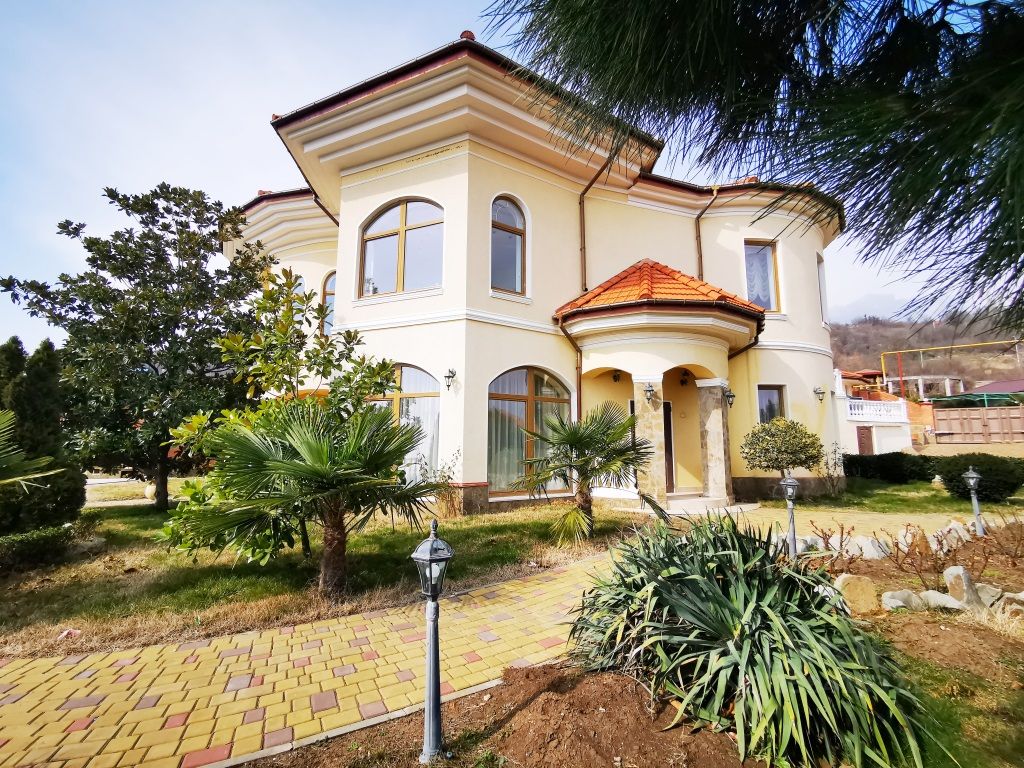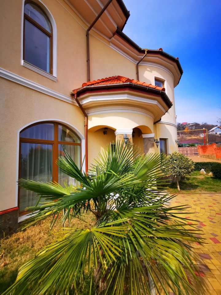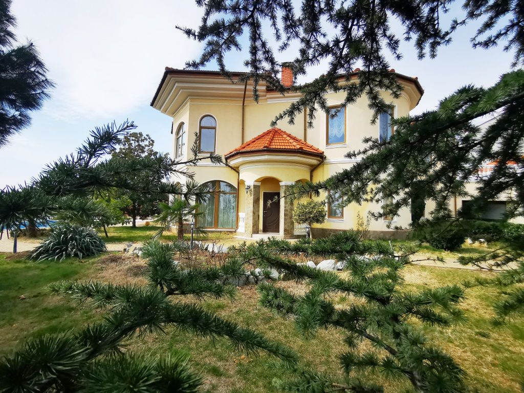 Продажа современной виллы в Малом Маяке. Шикарная вилла в Малом Маяке расположена на господствующей вершине над поселком, из окон резиденции и территории потрясающий вид на море и побережье (вид никогда не перекроют). Резиденция имеет два жилых этажа общей площадью 409 кв.м. На вилле дизайнерский евро ремонт в Итальянском стиле с применением дорогостоящих материалов и оригинальных элементов декора. Полы первого этажа и лестницы отделаны натуральным мрамором, кованные перила. На вилле пять спален, сауна, бильярдная, пять сан узлов, балконы и террасы с панорамным застеклением, просторная и светлая кухня гостиная с действующим камином и панорамным застеклением. Также на вилле расположены гардеробные и технические помещения. Продажа со всей обстановкой шикарной мебелью и встроенной функциональной техникой. Земельный участок 20 соток, участок по всему периметру огорожен капитальным забором из красного кирпича с автоматическими воротами. На участке разбит фруктовый сад с зелеными газонами и прогулочными дорожками, беседка с летней кухней и доменным мангалом, плавательный бассейн с подогревом и подсветкой.