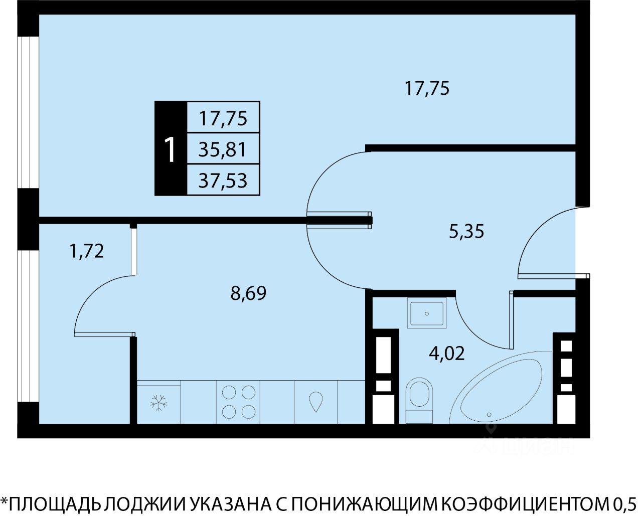 Общая площадь37,53 м2