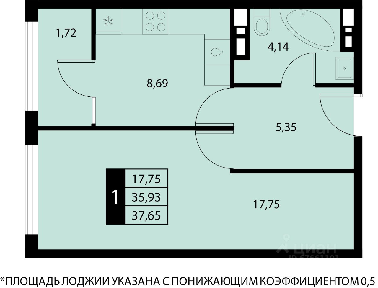 продам 1-к, Партенит Парк ЖК9 342 816 ₽
