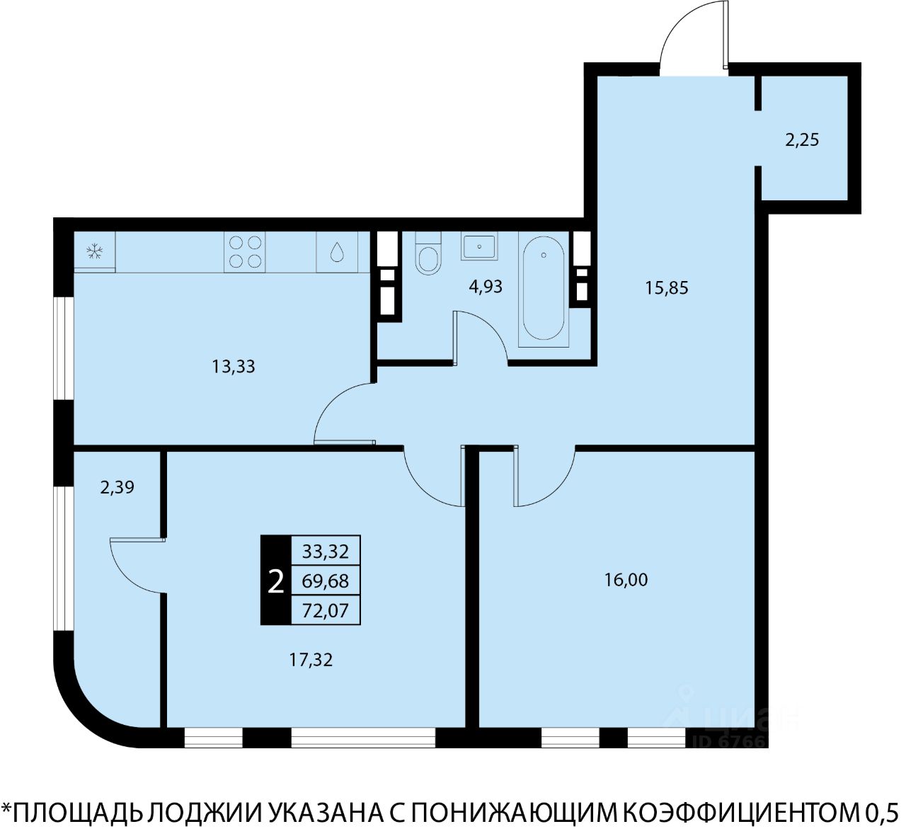 Общая площадь72,07 м2