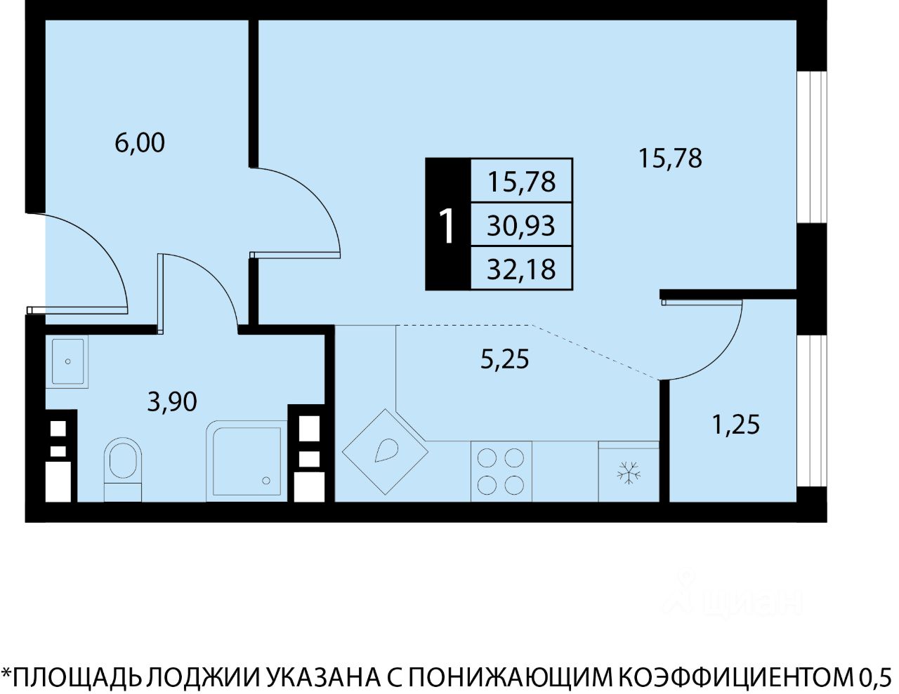 Общая площадь32,18 м2