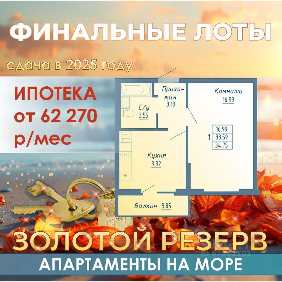 Продаются 1-комнатные апартаменты в строящемся доме (Строение 1), срок сдачи: IV-кв. 2025, общей площадью 34.75 кв.м., на 1 этаже. ''Бирюзовая бухта'' - трехсекционный восьмиэтажный апартаментный комплекс с развитой инфраструктурой, расположенный в экологически чистом районе города, в 15-ти минутах ходьбы до благоустроенной набережной и оборудованного, бесплатного песчаного пляжа. На территории комплекса и рядом с ним все, что нужно для комфортного проживания и отдыха - кафе, магазины, спортзал, зеленая территория, уютный двор. На крыше ''Бирюзовой бухта'' организовано дополнительное общественное пространство с шезлонгами, зонами отдыха с wi-fi, закрытыми от солнца столиками, лежаками.