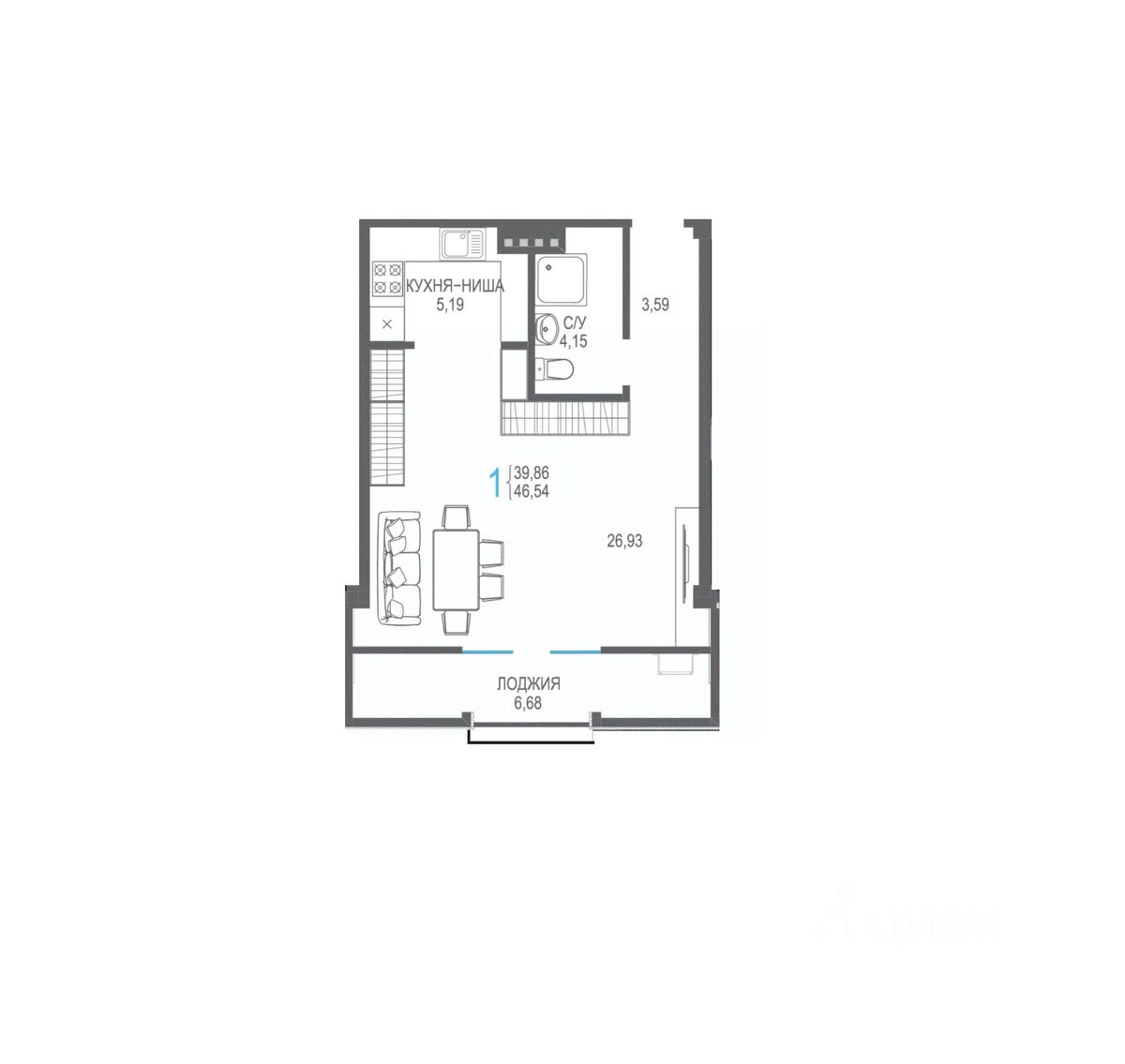 Общая площадь46,54 м2
