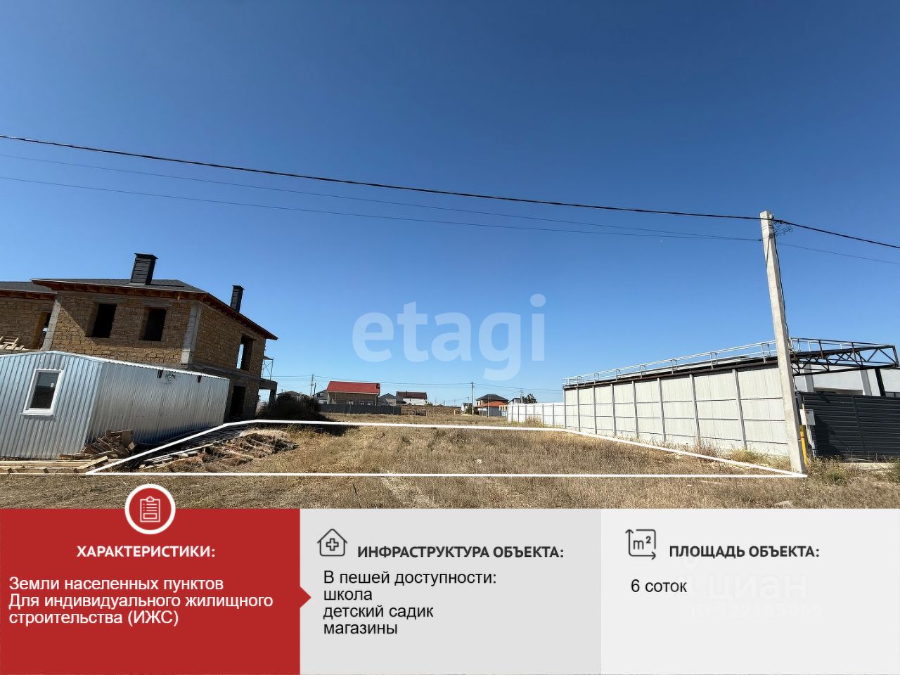 Участок 6 соток Категория земель Земли населенных пунктов Вид разрешенного использования Для индивидуального жилищного строительства На данном участке можно построить капитальное строение со статусом жилое. Электроснабжение и газ проходят по улице.