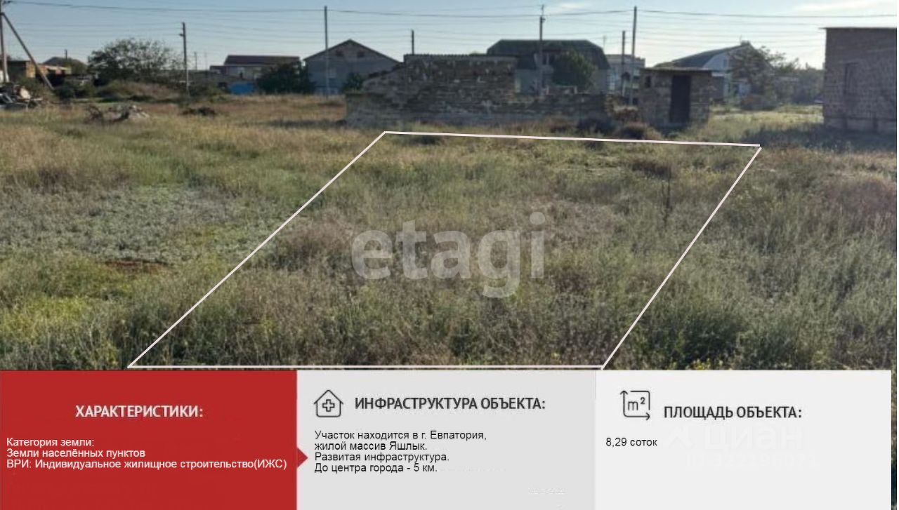 Продаётся отличный земельный участок площадью 8,29 соток в городе Евпатория!