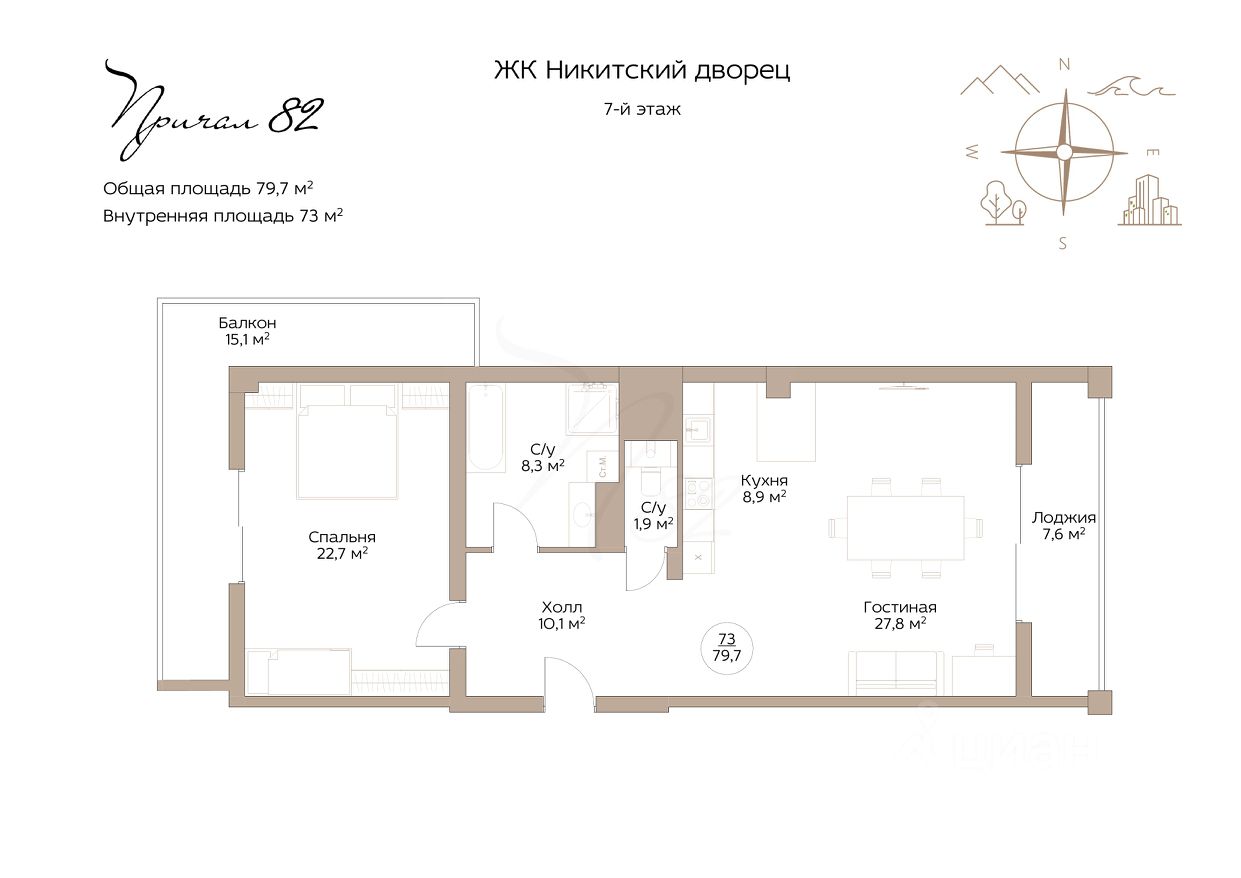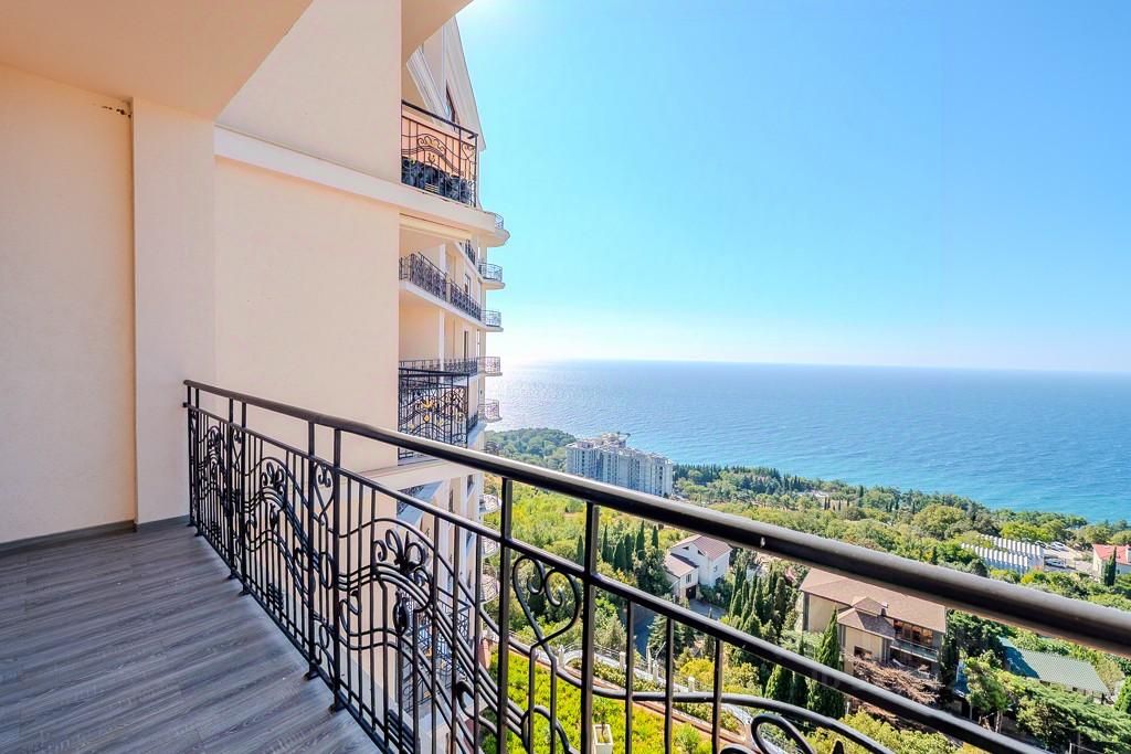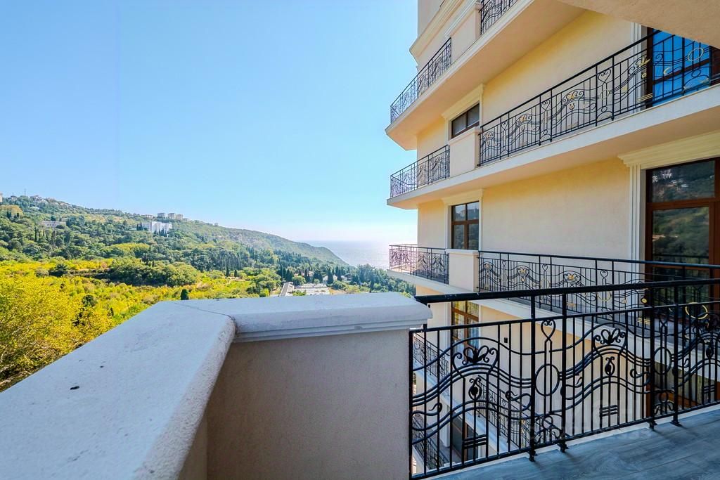 Квартира 73 с ремонтом в ЖК Никитский дворец Квартира общей площадью 102,4 кв.м, расположена на 7 этаже 10 этажного корпуса. Главное достоинство панорамное остекление. Окна выходят на 2 стороны света и с обеих сторон имеется свой большой видовой балкон. С Юга вид открывается на море, горный хребет и ялтинскую бухту, с Севера вид открывается на заповедную зону и Никитский ботанический сад. Высокие потолки 3,40 м дарят много света и воздуха.